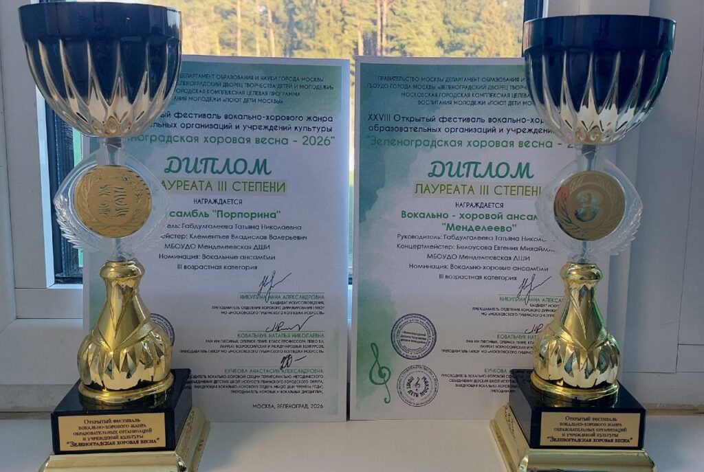 Вокально-хоровой ансамбль «Менделеево» и вокальный ансамбль «Порпорина» стали лауреатами XXVII Открытого фестиваля вокально-хорового жанра «Зеленоградская хоровая весна-2026».